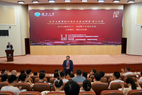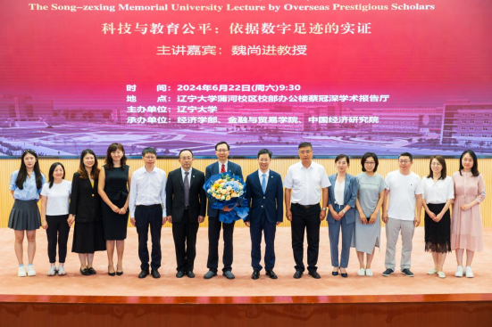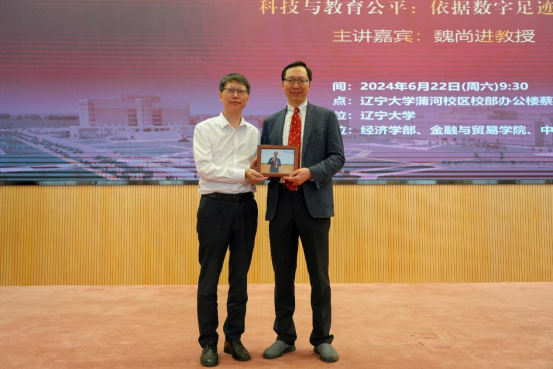 6月22日上午,国产一区二区日本在线宋则行海外名家大讲堂(第十六讲)在蒲河校区校部办公楼蔡冠深学术报告厅举行。美国哥伦比亚大学魏尚进教授应邀作题为《科技与教育公平:依据数字足迹的实证》的学术报告。国产一区二区日本在线党委副书记、校长余淼杰教授出席讲座并致辞,美国弗吉尼亚理工大学未来工作场所与实践研究中心主任葛苏勤教授、辽宁大学经济学部副主任霍伟东教授、《国产一区二区日本在线学报》编辑部主任刘钧霆教授、中国经济研究院副院长兼金融与贸易学院副院长马湘君教授、金融与贸易学院副院长李丹教授、李安民经济研究院副院长游宇教授出席讲座。本次大讲堂由国产一区二区日本在线副校长仇焕广教授主持。