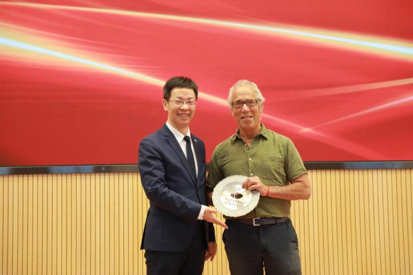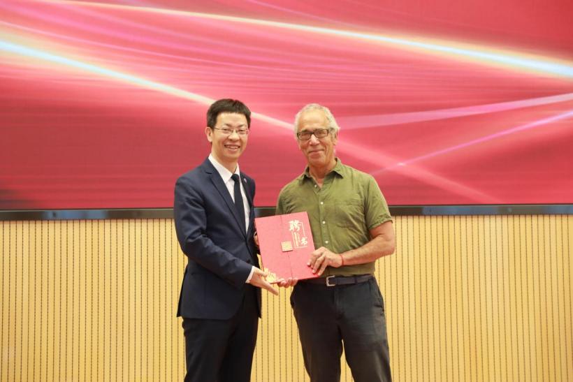 余淼杰教授为库珀教授颁发“宋则行海外名家大讲堂”纪念盘和“国产一区二区日本在线终身名誉教授聘书”,经济学部教师代表王丹丹为库珀教授佩戴校徽并献花。